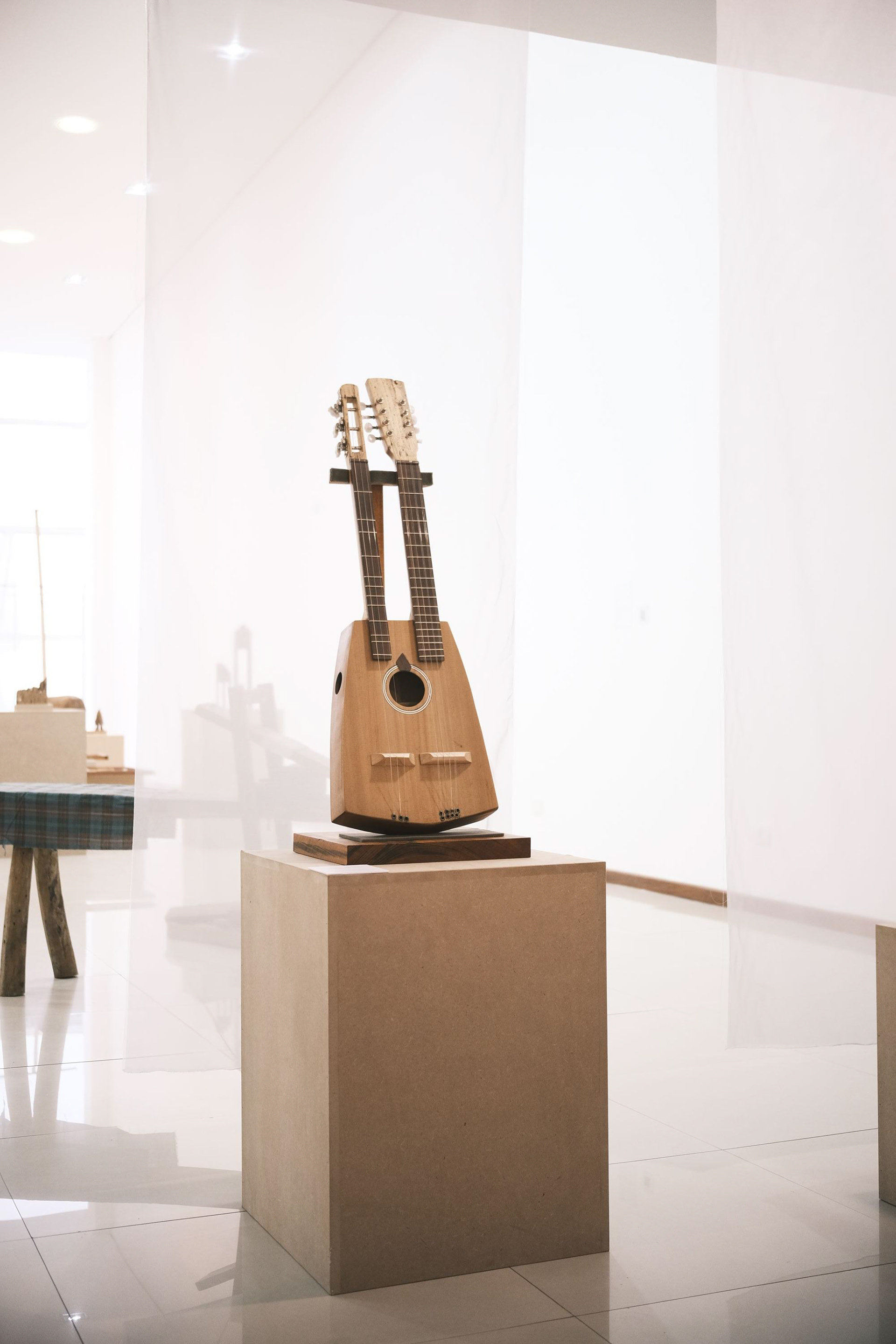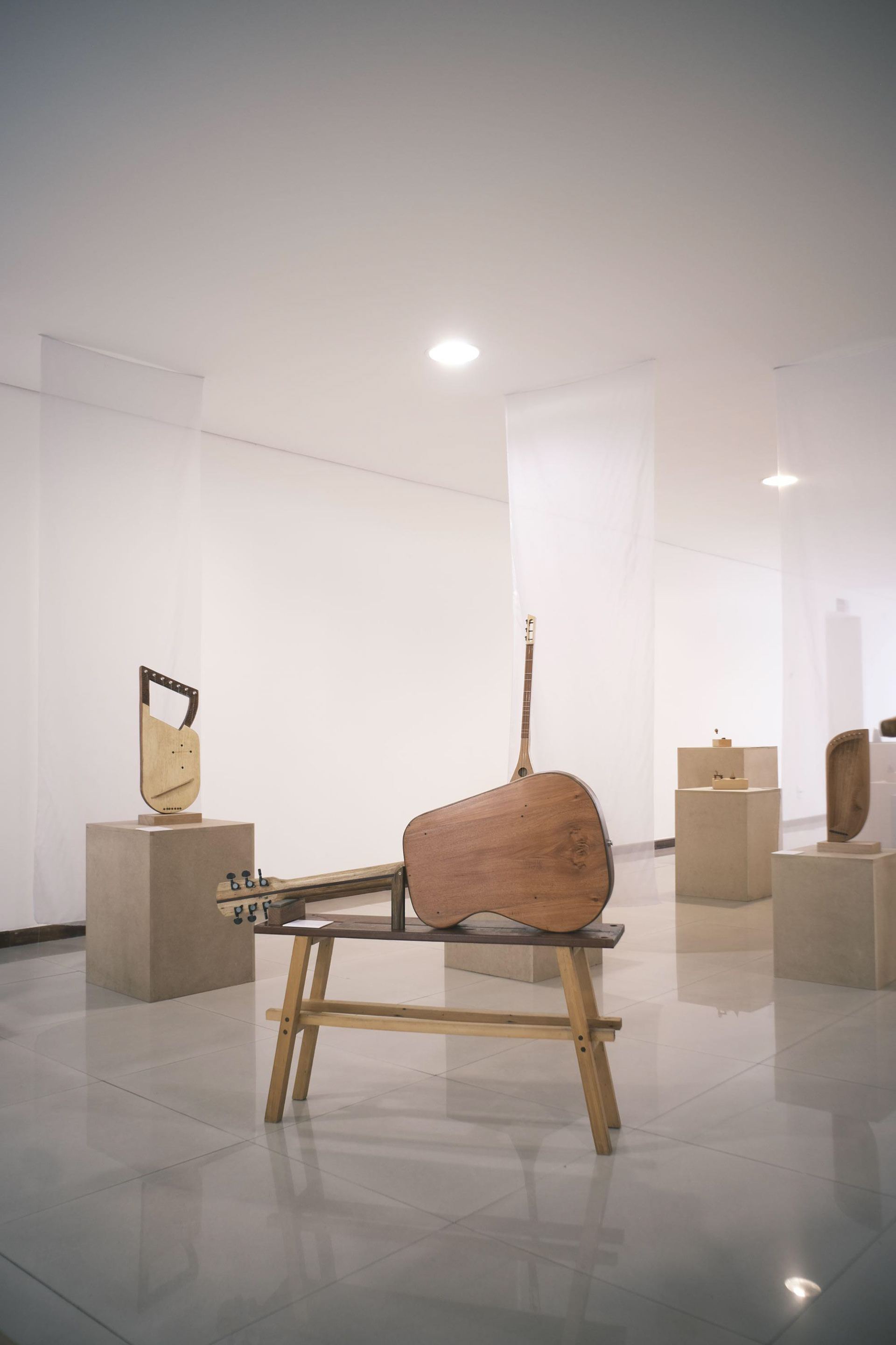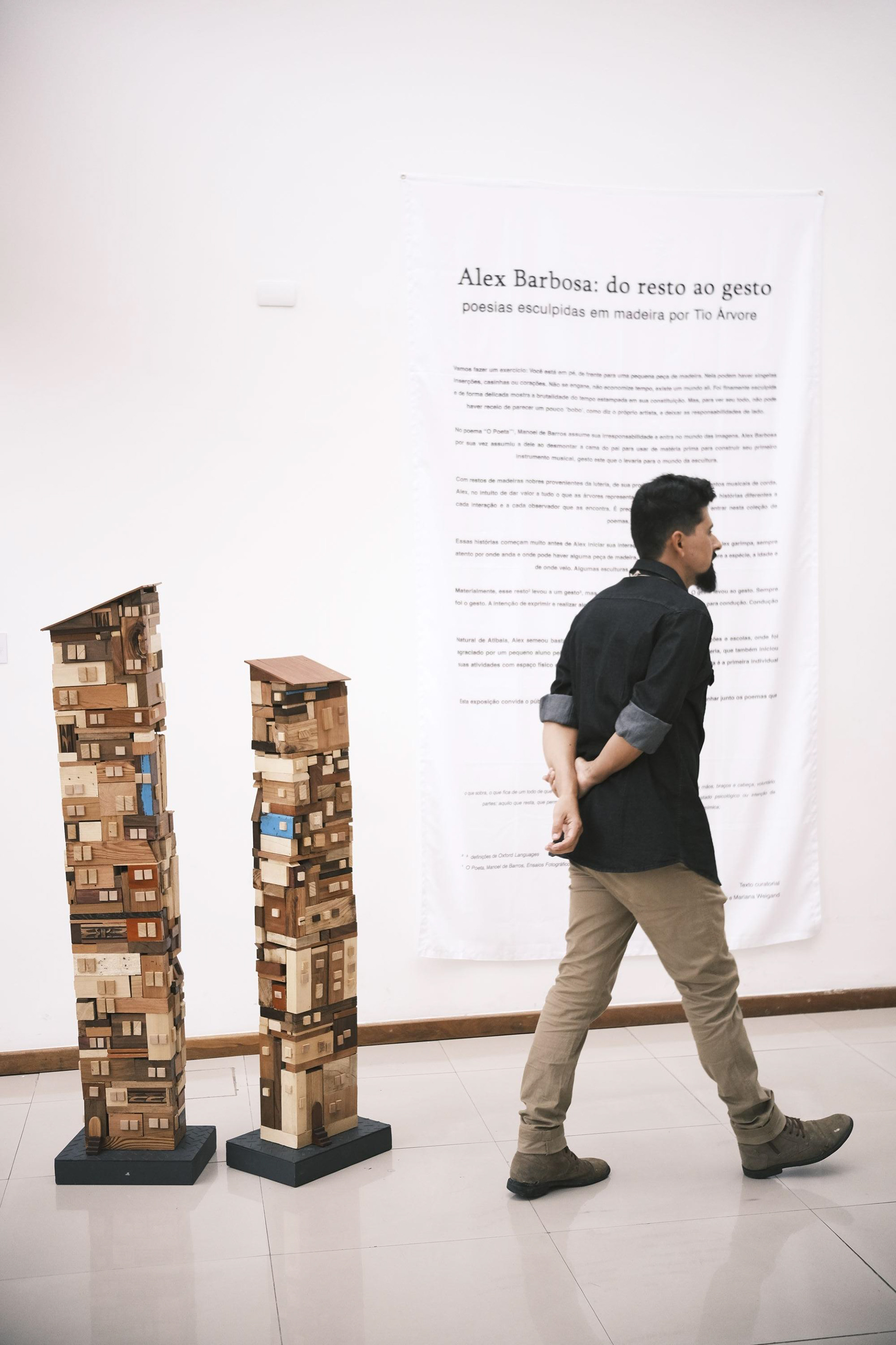 Com restos de madeiras nobres provenientes da luteria, de sua produção autoral de instrumentos musicais de corda, Alex, no intuito de dar valor a tudo o que as árvores representam, esculpe obras que ganham histórias diferentes a cada interação e a cada observador que as encontra. É preciso imaginar e sonhar para nesta coleção de poemas.