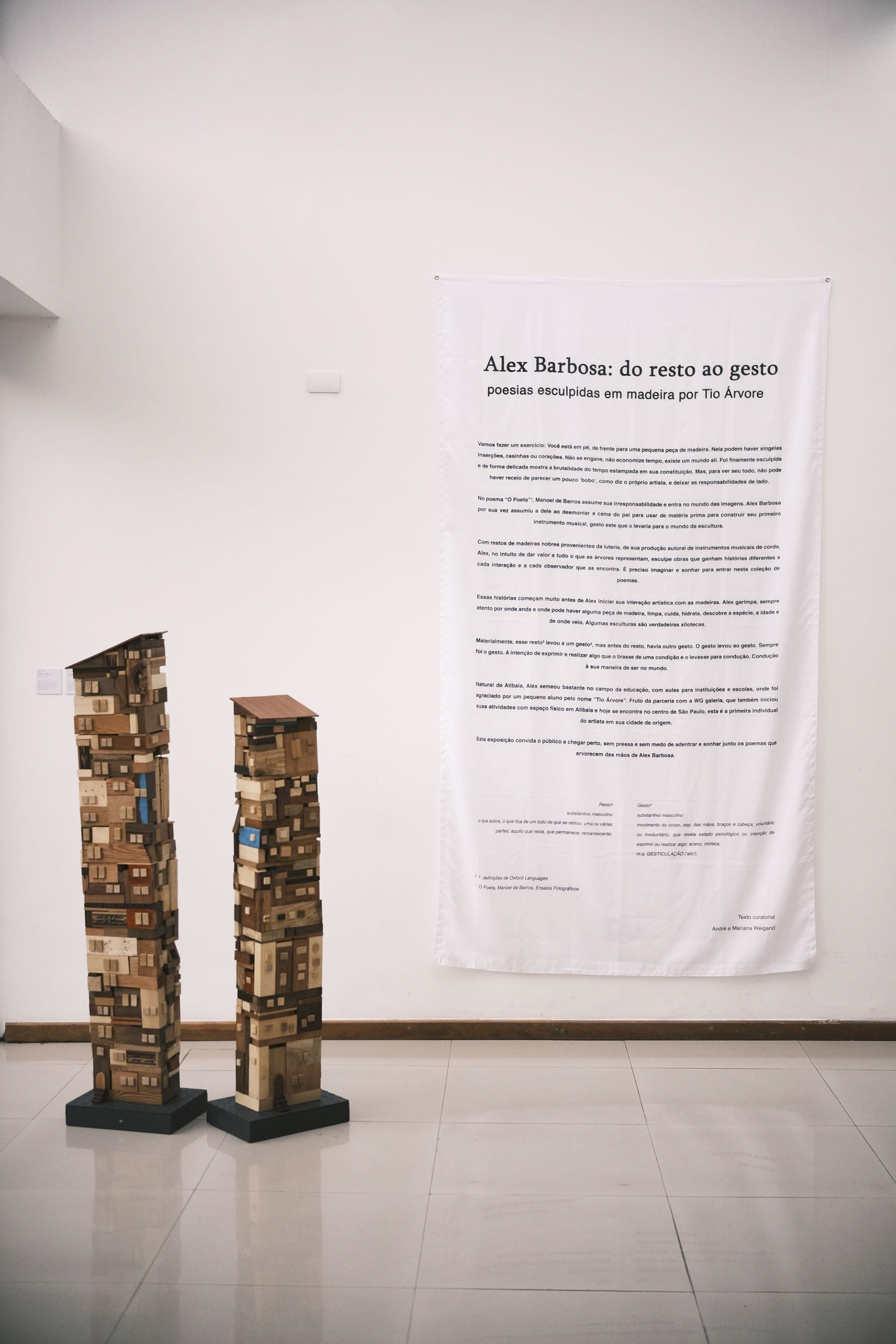 Natural de Atibaia, Alex semeou bastante no campo da educação, com aulas para instituições e escolas, onde foi agraciado por um pequeno aluno pelo nome “Tio Árvore”. Fruto da parceria com a WG galeria, que também iniciou suas atividades com espaço físico em Atibaia e hoje se encontra no centro de São Paulo, esta é a primeira individual do artista em sua cidade de origem.