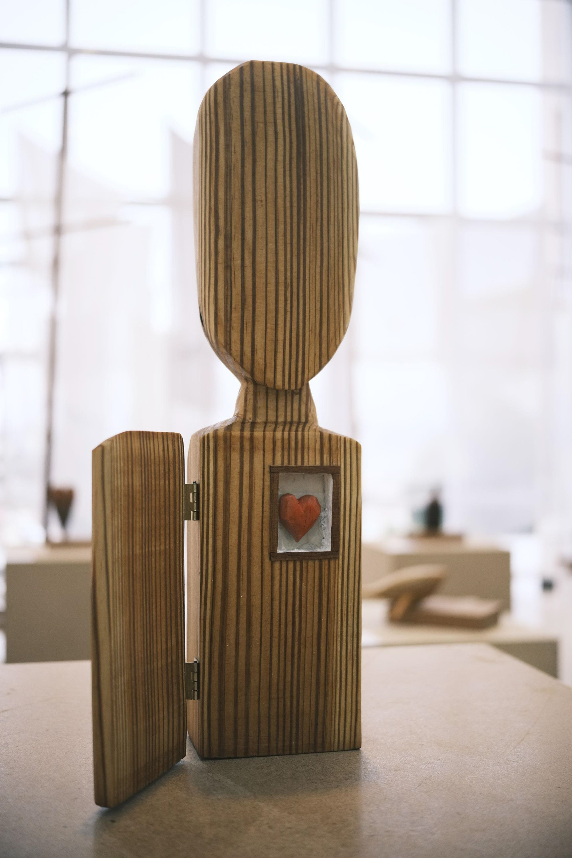 Vamos fazer um exercício: Você está em pé, de frente para uma pequena peça de madeira. Nela podem haver singelas inserções, casinhas ou corações. Não se engane, não economize tempo, existe um mundo ali. Foi finamente esculpida e de forma delicada mostra a brutalidade do tempo estampada em sua constituição. Mas, para ver seu todo, não pode haver receio de parecer um pouco ‘bobo’, como diz o próprio artista, e deixar as responsabilidades de lado.